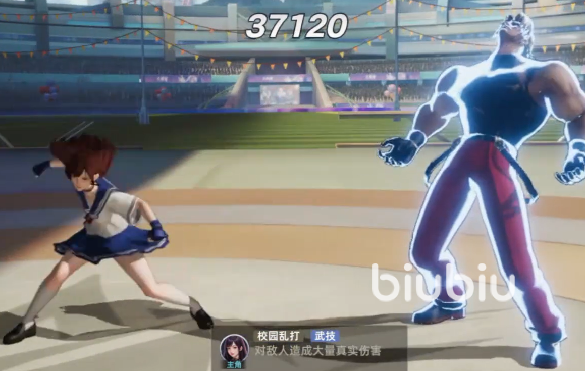 接着她还有个技能叫做校园乱打,这比起其她两个技能来说,这是一个强大的单体输出技能。因为她可以直接瞄准好一个对手,对她造成大量的多段式真实伤害。甚至有概率将其秒杀,所以大家可以优先用这个技能去攻打对方的主要输出角色。