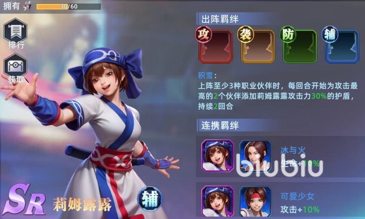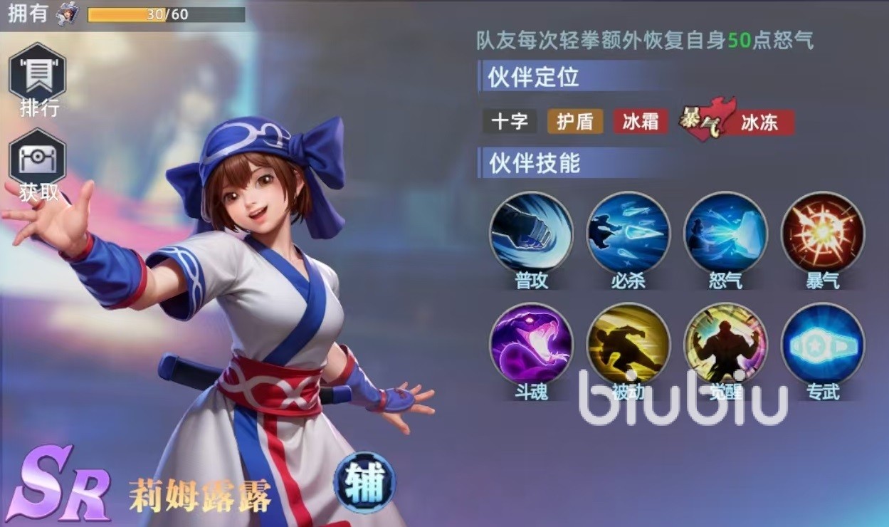 莉姆露露作为一名辅助,它具有冰冻、冰霜、护盾等一系列效果,在这一方面表现得非常全能。在第二回合开始直接就能触发爆气,对敌方随机三个目标,有几率造成一层冰霜效果。必杀是攻击单体目标,造成能量伤害的同时,有50%几率造成一层冰霜,在爆气的强化下,攻击时优先为没有护盾的伙伴释放护盾。