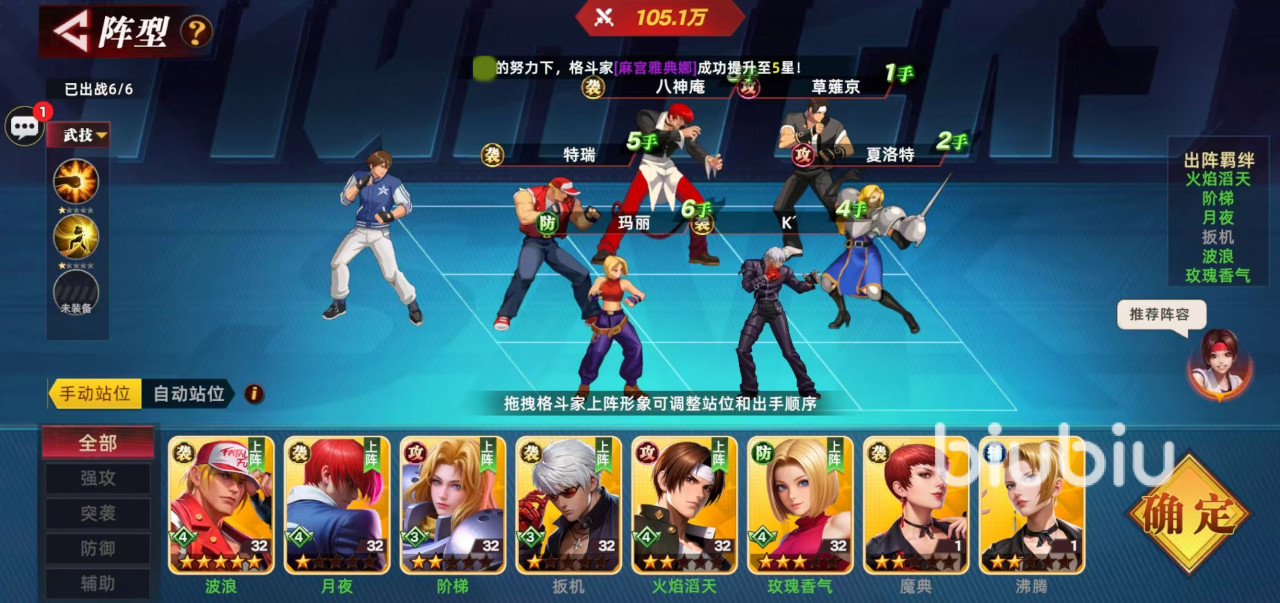 2025年10月03日 12:05 来源:可汗但铁甲蛹对于喜欢格斗类游戏的玩家来说,全明星觉醒是一款不容错过的手游,这款获得了正版授权的产品,集合了snk的全明星阵容,八神、不知火舞等,在这里都会登场。今天小编给大家带来的内容是全明星觉醒角色推荐。对于这类游戏来说,选对角色组成阵容非常关键,所以大家需要一些强力的选手。