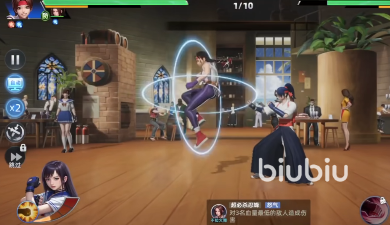 当然作为新手,大家前期还是比较懵懂的。不过会慢慢认识其他snk中的角色,例如百合或者不知火舞,并一起组成队伍,开始新的征战!另外还有着多种支线任务剧情,可以与主线剧情一同推进。例如大家要和这几个角色,一起去幻影酒吧寻找姐姐,然后还会遇到袭击!