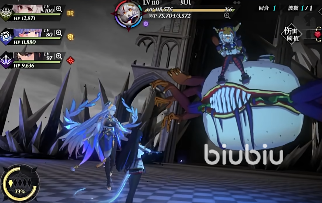 1技能“洪波”,全体魔女能获得可降低34%来自虚弱目标伤害值的水之加护,并对所有敌方施加1层水元素,元素会触发元素融合,这个招式共享冷却时间,在进入战斗的首个回合,她所凭借的魔女行动后对全体敌人释放一次满级“奥法天河”,每个偶数回合,首次使用技能不进入冷却。