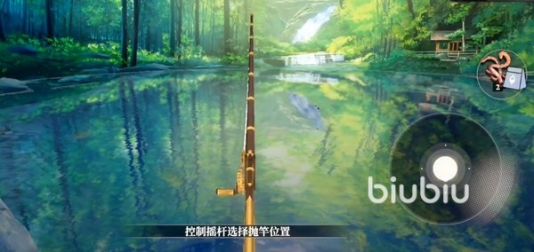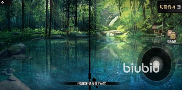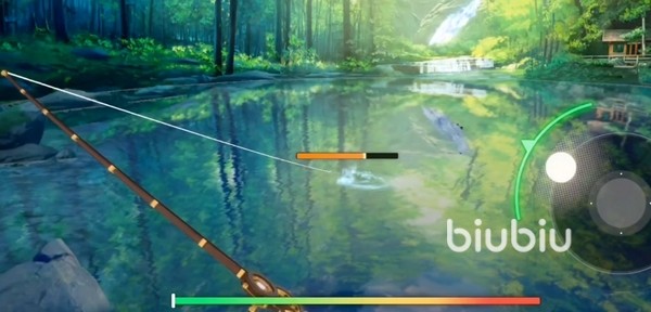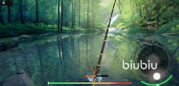 具体钓鱼流程分为四个阶段,首先是抛竿,玩家可以通过水面的倒影看到水下鱼类的大致身影,然后选择合适的鱼饵,利用摇杆控制方向,并通过按住屏幕的时间来决定抛竿的远近。接着就是等待上钩的过程,随后进入与鱼搏斗的阶段,包括追击和QTE两种操作,玩家需要根据提示迅速调整方向或点击按键,直到鱼的生命值被清空。当鱼体力耗尽时,就能够收获成果。