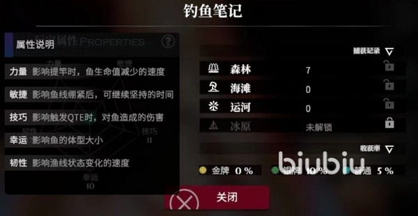 钓鱼的过程中,角色的钓鱼属性发挥着决定性作用。力量、敏捷、技巧、幸运和韧性五项属性,分别对应钓鱼时的不同环节。力量可以加快鱼生命值消耗速度,敏捷影响鱼线绷紧时的持续时间,技巧决定QTE的伤害效果,幸运关系到鱼的体型,而韧性则与鱼线状态的变化速度挂钩。