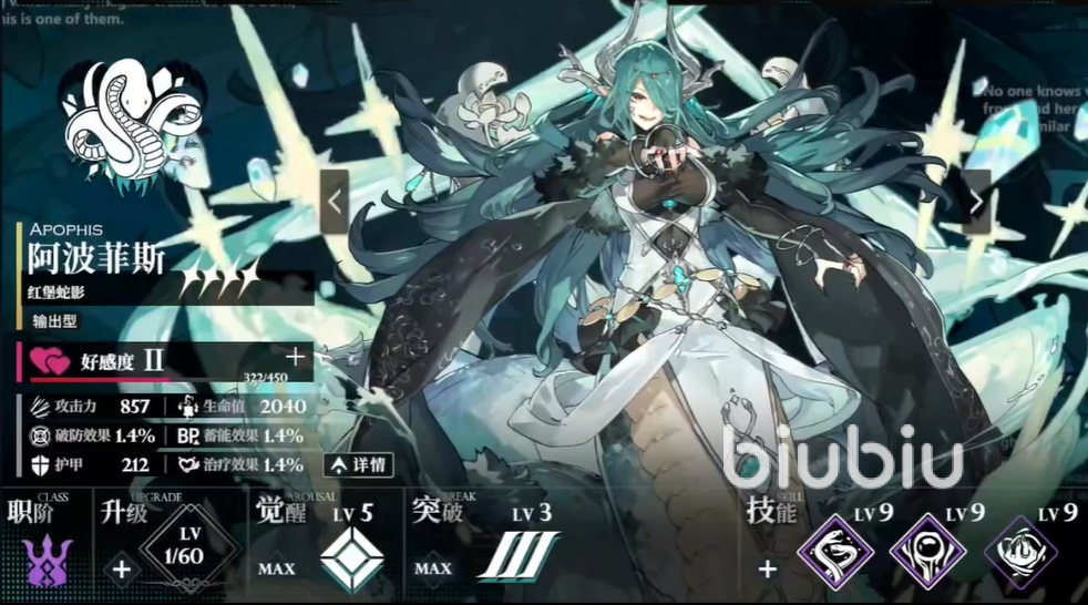 阿波菲斯堪称侵蚀队的单体输出担当,她一二技能配合,短时间就能给BOSS叠加多层侵蚀,又可以提升侵蚀强度,高效叠层能力无可替代。尽管是四星卡,但其输出实力不容小觑,只要抽到她,侵蚀队便有了成型的基石。