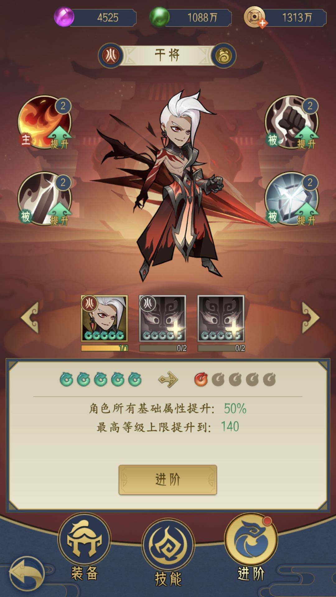 干将的能力比较均衡,大招倍率1.35,灼烧伤害只有0.45,不过自带DEBUFF减少对方的暴击率,打PK的话优于黄月英。干将最大的特点是可以放在前排承受伤害,被动技能1.2倍率伤害的反击效果不俗,升星简单搭配奶妈在前期推图还是很好用的。