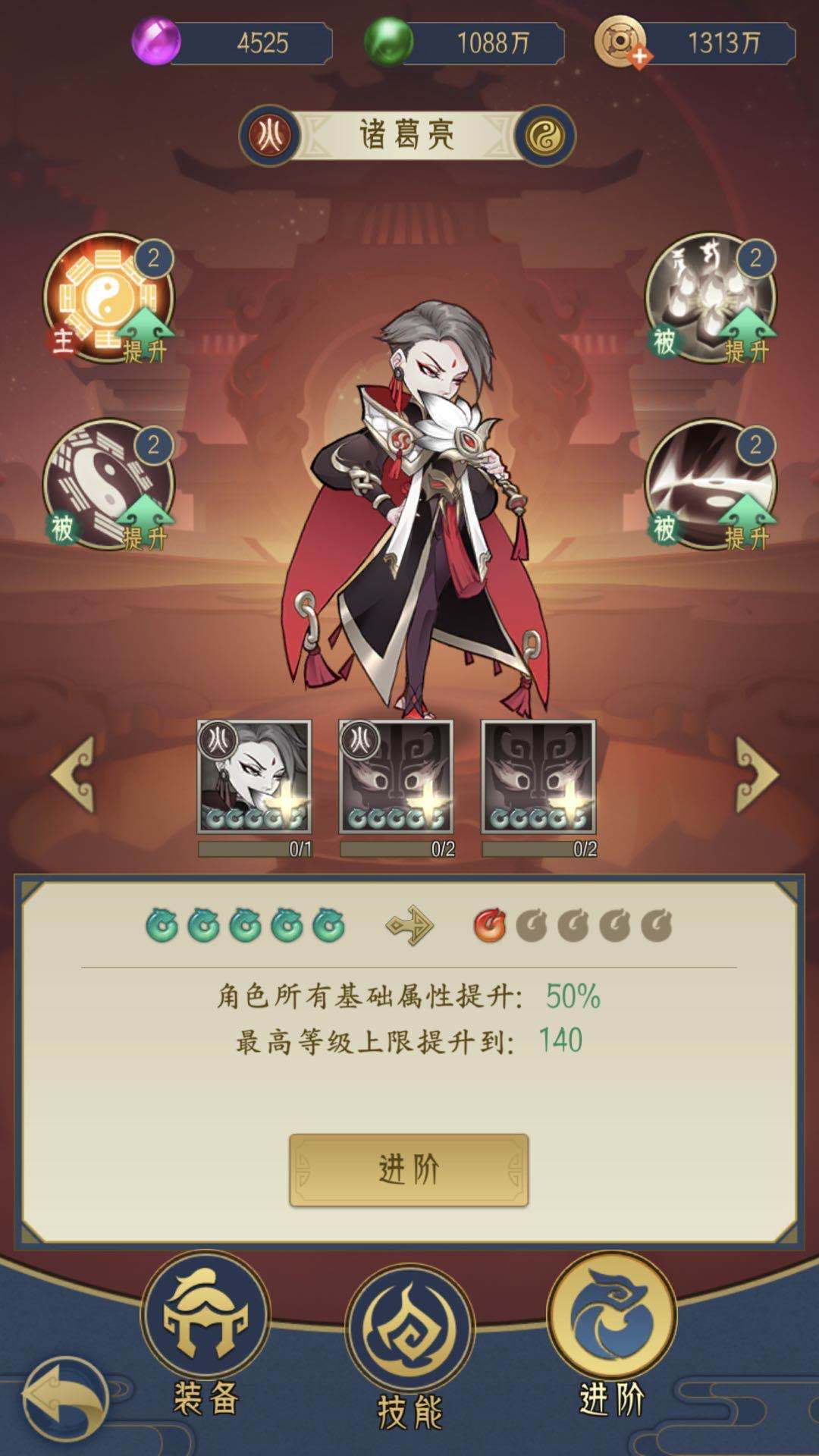 诸葛亮偏向于推图和正常PVP,大招是群体伤害,但是倍率有点低。好就好在诸葛亮的所有技能都有一定的概率给对方叠加一层印记,每一层印记可以加深百分之30的伤害,正因为有这个效果诸葛亮才称得上火系最强推图卡。