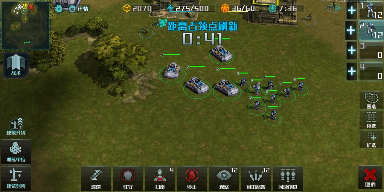 如果玩家想要增加人口上限,那么也必须提高指挥中心的等级,1~4级指挥中心分别提供40、60、90和120人口。只要人口数量足够多,玩家完全可以多线作战、以多打少,进而赢下胜利。