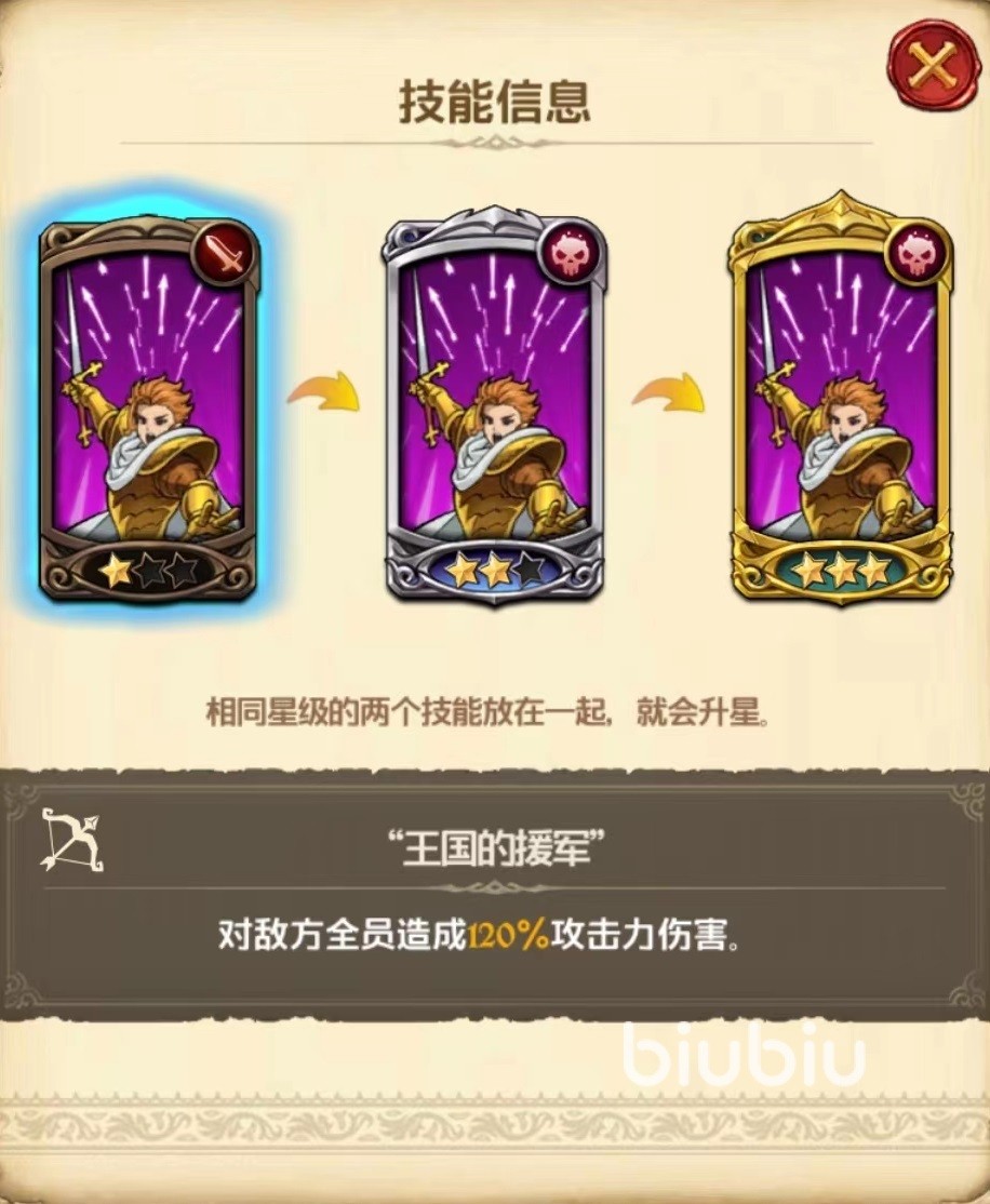 相信大家在观察角色技能效果的时候,经常会发现有些目标带有增加能量槽格数技能效果,这样固然可以提高终结技释放几率,但在面对亚瑟时将会受到更高伤害,所以亚瑟也经常用来克制这一类角色。第2个技能王国的援军,是群体伤害类型,一星时仅仅只有120%攻击力伤害效果,当提升星级之后能够获得额外两回合使对方无法使用回复技能。造成伤害并不算太高,但是群体输出类型,所以最终伤害值不算低。最关键是附加额外效果使对方无法使用回复技能,对一些辅助来说是很沉重的打击。