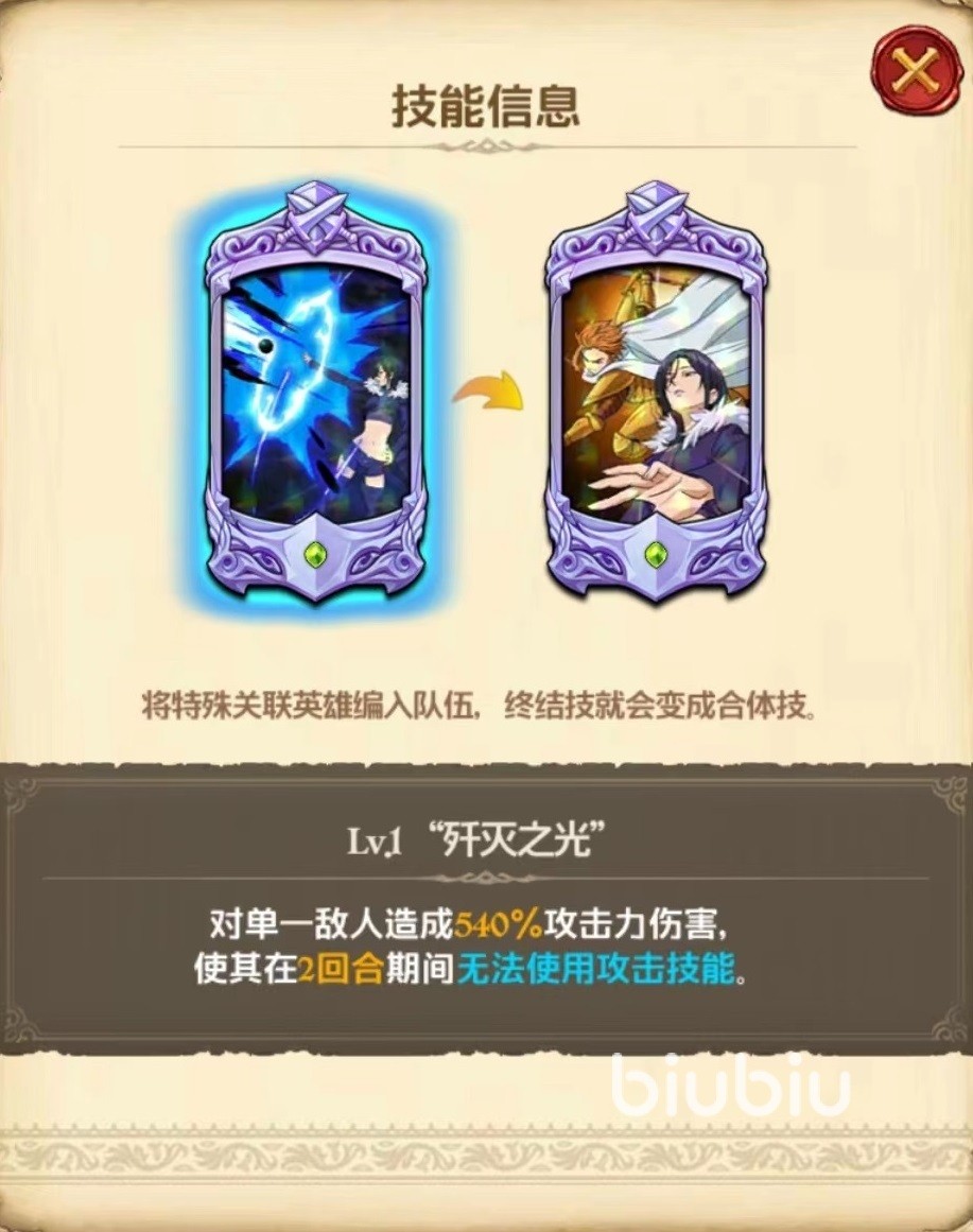 专属技能丰富的样品,对我方全体英雄在战斗时自动生效,使其终结技能量槽增加一格,能量槽增加也就意味着可以储存更多能量,虽然不是直接恢复能量效果,但是最终所能发挥出来的价值更高。第1个技能黑暗侵蚀,对选中单一目标造成伤害,并使其技能能量槽减少一格。当此技能升到三星之后,不仅攻击力大幅提升,能量槽能减少达到三格,这对敌方目标来说是很大的限制,几乎使其无法成功放出终极技能。