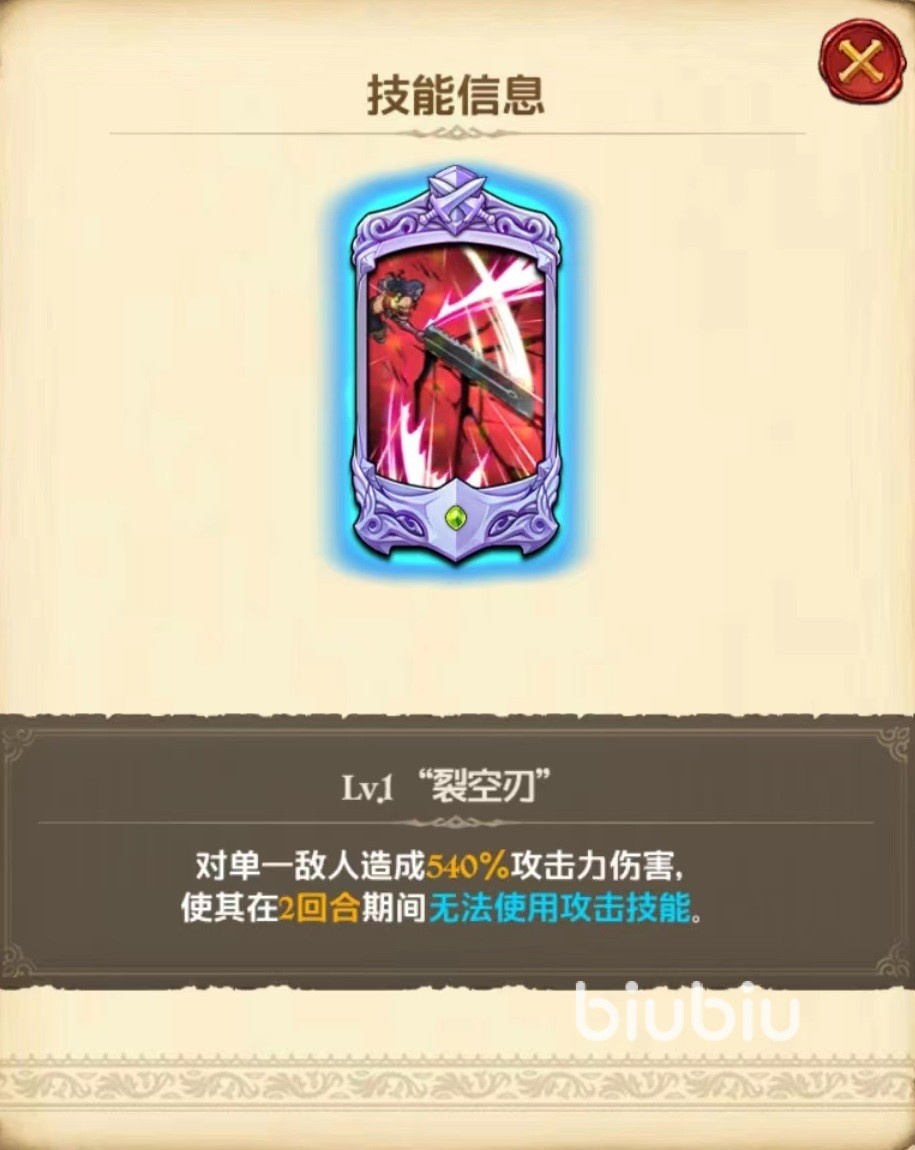 终极技能裂空刃同样输出单一敌方目标,造成高额伤害同时,使其在两个回合期间内无法使用攻击技能。该角色这两个效果非常有趣,一个是使其只能使用攻击技能,而另一个则是完全限制,所以在实战中经常会出现非常有趣现象,那就是该释放攻击时无法释放。最后是专属技能压迫,在战斗开始时会按照当前暴击率来计算,降低敌方全体目标身上暴击抵抗。暴击抵抗就是为了降低在受到攻击时出现暴击几率,降低之后就会有很大几率直接触发暴击,对全体目标提升输出都是有好处的。