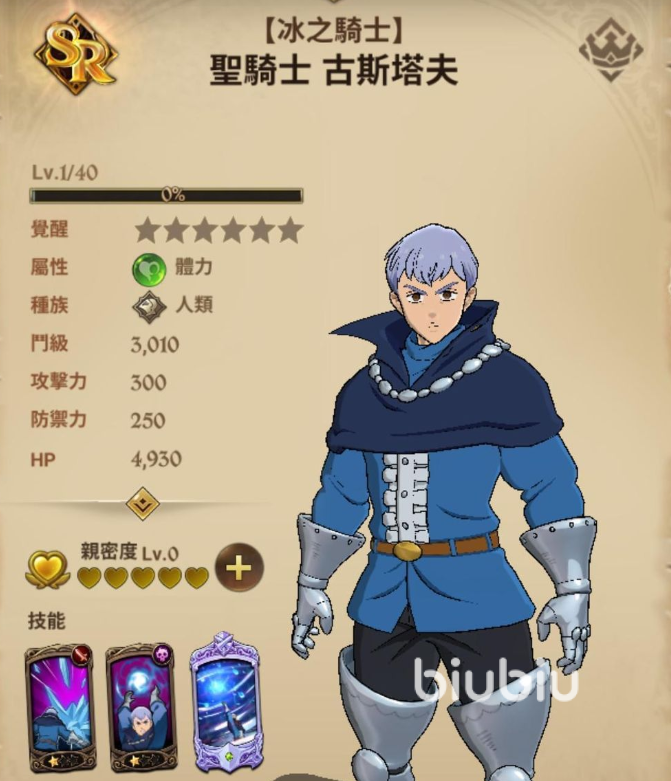 骑士精神吉尔桑达, 木雷帝,虽然只是SR的卡, 但一手60%攻击加成buff可以让他的输出得到显著的提升,其被动效果作为支援位在pvp里非常不错,30%的防御关联提升。