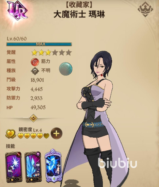 复仇的化身海尔布拉姆,火妖,技能可以减敌人的豆豆,还有石化效果,能有效的限制敌方的行动,对付一些特别棘手的关卡也能发挥作用。自动被动根据己方存活人数提升自己的属性,基本可以理解为一个15%的常驻属性提升,这个提升幅度还是蛮高的,搭配1技能较高的倍率,火妖也可以作为一个输出手来使用。