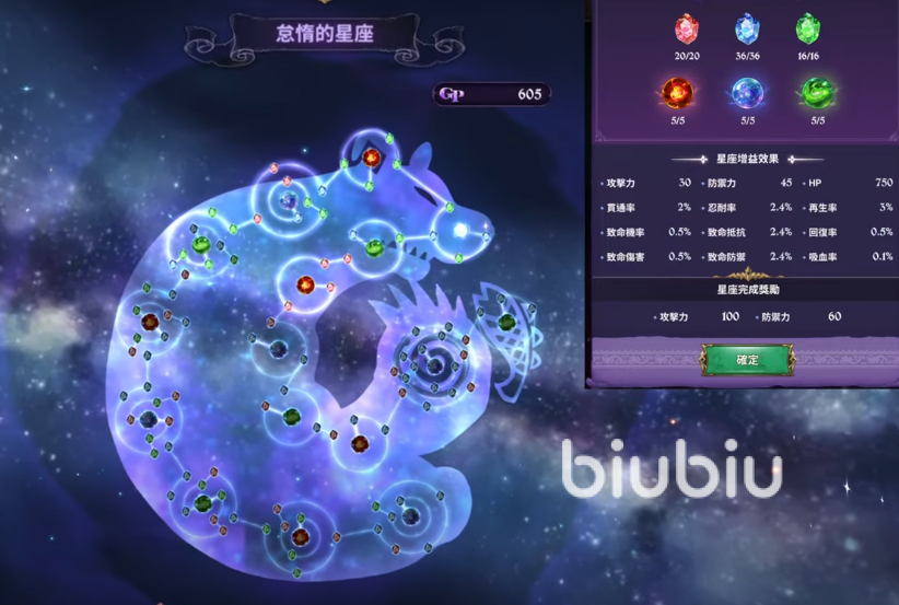 得到时装、进化、入手角色等可以得到gp点数,用点数点亮七星座也能带来攻防血的加成,相应的提升一些斗级。