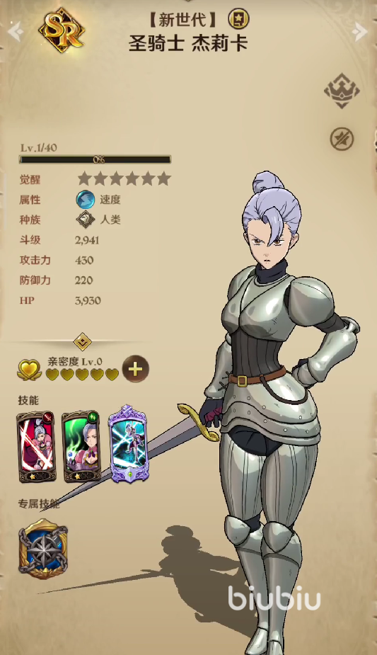 虽然sr级别有两张圣骑士杰莉卡,但是相比之下,还是新世代这张更适合各位玩家们优先培养。其主要在于它不仅有着不错的伤害的同时,还有着一定的团队治疗能力,在打长线作战的时候,其百分比比例的治疗手段往往能发挥出意想不到的效果,极大的改善我们的对局环境。
