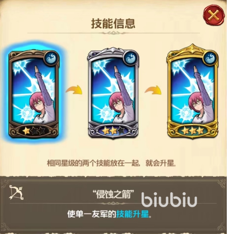 侵蚀之剑是高瑟的第二个技能了,如果高瑟处于一星,那么这个技能就是对单个的己方的英雄的技能直接提升一星,技能水平提高,也就是拔高伤害了,如果将班升到三星之后,那么她的这个技能就能够发挥很大的优势了,这个技能能够对己方所有英雄的技能都进行升星,也就是说直接是技能级别的碾压对面了。