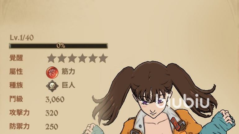 圣骑蓝黛,早期的角色,没什么功能性,输出即便是在暖机之后也不算很高,一般是在关卡需要巨人和破裂才有加分的时候会用,不然用途不大。
