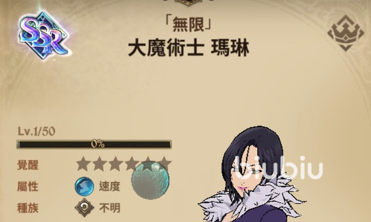 天翼人,指定公会boss中登场,有上位替代品所以没有太多出场机会,比较常用的时候必杀加防触发忍耐4回合。