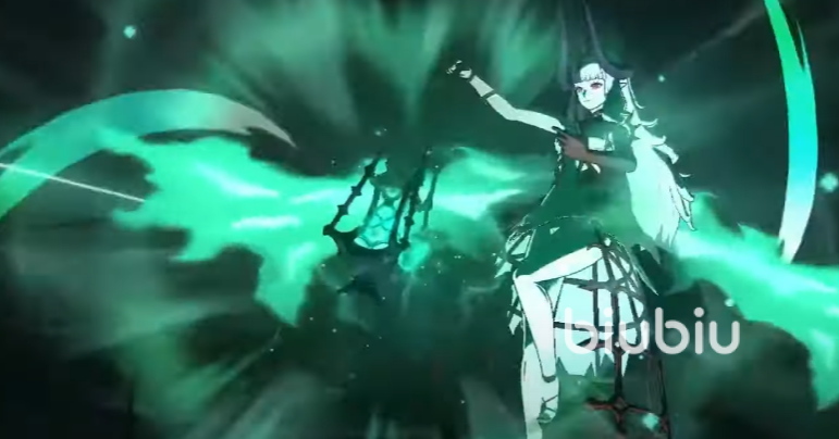 必杀技“地狱行”,在2回合内自身伤害提升并且敌方全体受到伤害提升10%,同时对敌方全体造成500%攻击力的伤害。此外该技能还有被动效果,当自身参与战斗的时候,每有一个诸神黄昏特征、不明种族角色阵亡的时候,自己会获得1个“不灭的响导”buff。该buff会覆盖掉苦痛的根源,自身阵亡的时候会保留1点血,必杀值归0,同时解除1个该buff,但是因为反射的阵亡不会复活。