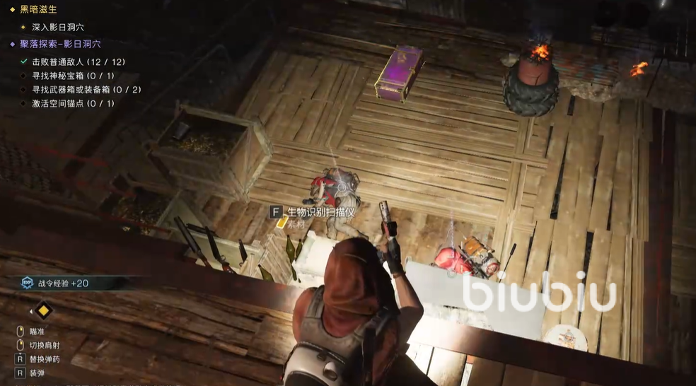 上到阶梯以后会遇见一个小型地近战boss,这个boss比较难处理,因为该boss不仅血量高,而且移动速度很快,可以瞬间打掉玩家们的血量,那为了避免探索死亡,建议玩家们去寻找一个高楼阶梯,然后把boss吸引过来,这样就可以对着头部进行火力输出,然后就能完成击杀,接着就可以在四处寻找到武器箱子。