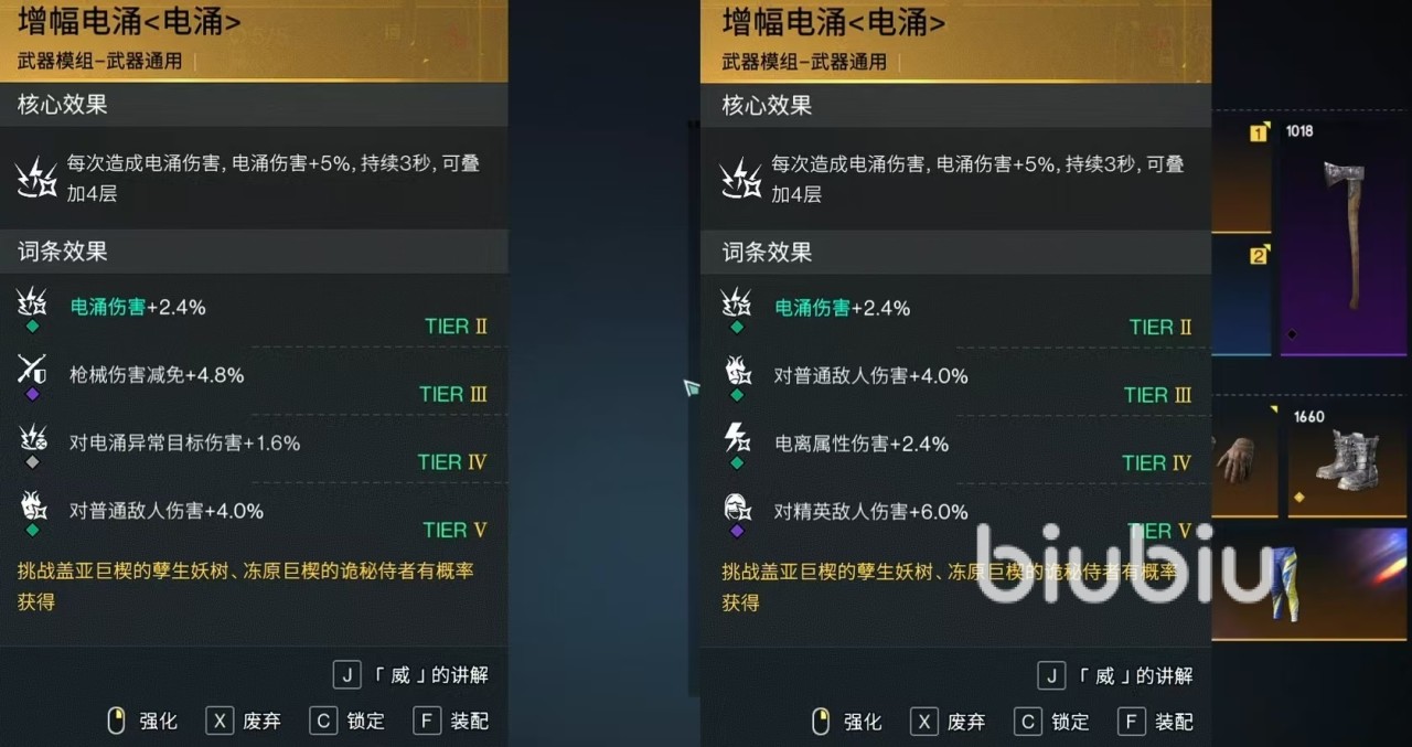 第7个冰霜漩涡,命中敌人之后能够制作出冰霜漩涡,冰霜漩涡可额外恢复子弹,还可以对敌人带来额外冰霜伤害,代表武器是冲锋枪冰雨。第8个灼烧,命中敌人后使其燃烧起来,造成额外伤害,能够叠加起来,代表武器是怒火攻心和双倍怒火。第9个电涌,使用电流冲击敌人,造成额外电属性伤害,可以直接削减敌人的生命值。