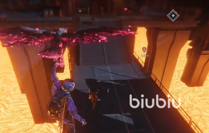 击败飞机场路上的3个小怪后直接起跳,跳到对面的平台上,走小一段能能看到两个电梯,坐电梯到下面区域(后续这个地方熟悉后可以选择直接往下跳,因为来的不巧的话电梯要等),到达后沿着楼梯往上走能看到一个水池,里面有一大桶熵素桶。