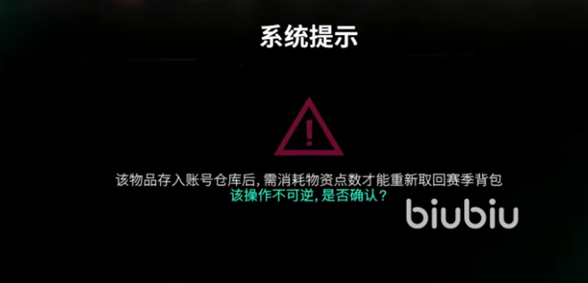 需要注意这个放入的操作是不可逆的,大家一旦放进去,想要取出就需要花费一定的物资点数,所以大家在放入前一定要确认好,避免放入了自己还有需要的物品,白白浪费掉物资点数。