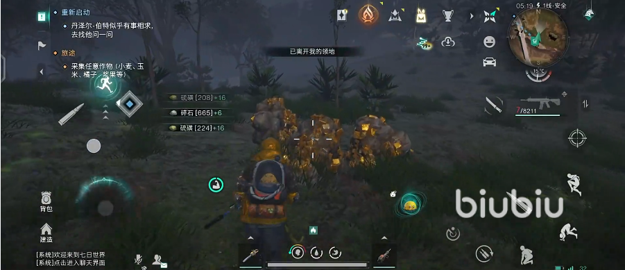 首先就是对一些资源比较丰富的区域进行标记,森林当中就是获得木材,药草,还有野生动物比较集中的区域,木材能用来制作工具建造,草药能治疗,野生动物就是生肉的来源,烹饪后的肉食可以恢复体力。矿区可以采集铁矿石和燧石。铁矿石能制作高级的工具和武器,燧石能生火,也能制作武器,可以将铁镐先制作出来,这样挖矿的效率会提高。废墟可以去搜索一些零件和电子元件,这些在后续发展科技时比较关键。