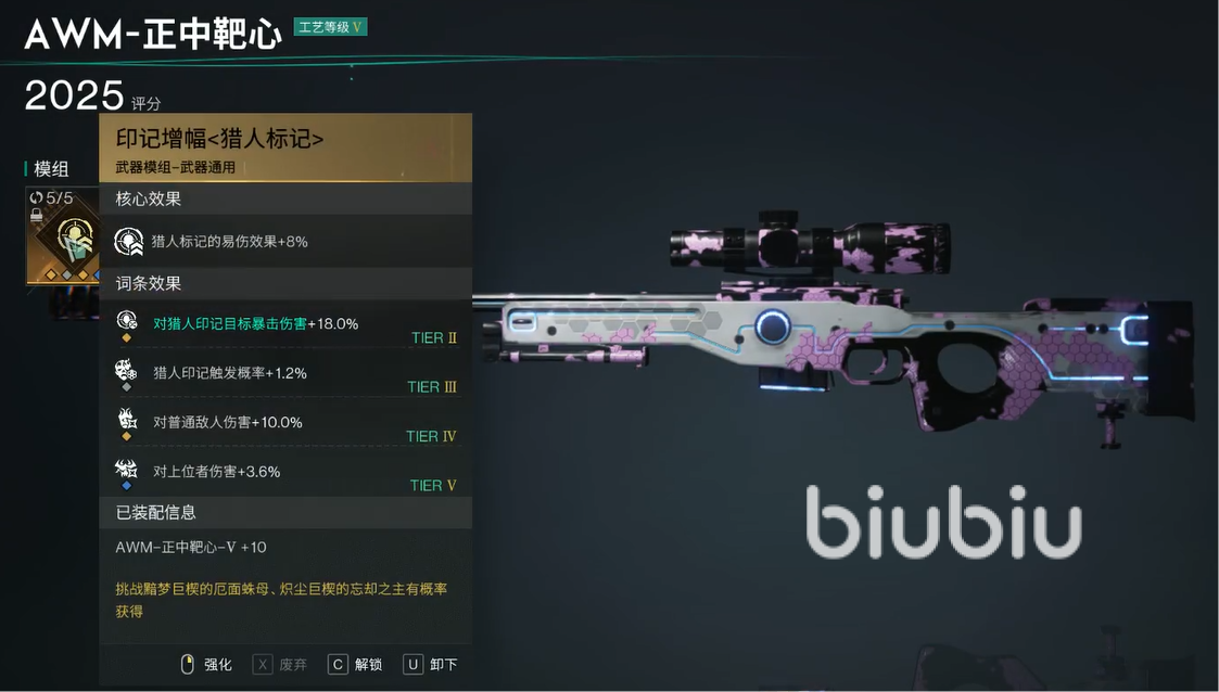 武器模组的话,推荐大家搭配爆弹战利品<暴烈>。当大家触发不稳定爆弹后,自动装填10%弹夹,可以增加持续作战能力。然后还可获得高额的暴击伤害以及额外伤害加成,能够进一步加强火力输出,让人闻风丧胆。