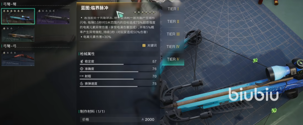 临界脉冲属于弓弩类武器,数值高的同时有极强的范围杀伤力,它的特性是在命中时会触发连续电涌,70%的几率在玩家的附近生成异常微粒,拾取后能进入充能状态,连续电涌可以在3秒内,每间隔0.5秒对敌人造成一定输出,若触发的时候处于充能状态,命中则会消耗充能产生球形闪电,对5米范围内的目标造成75%元素异常伤害,并有5%的概率产生异常微粒。