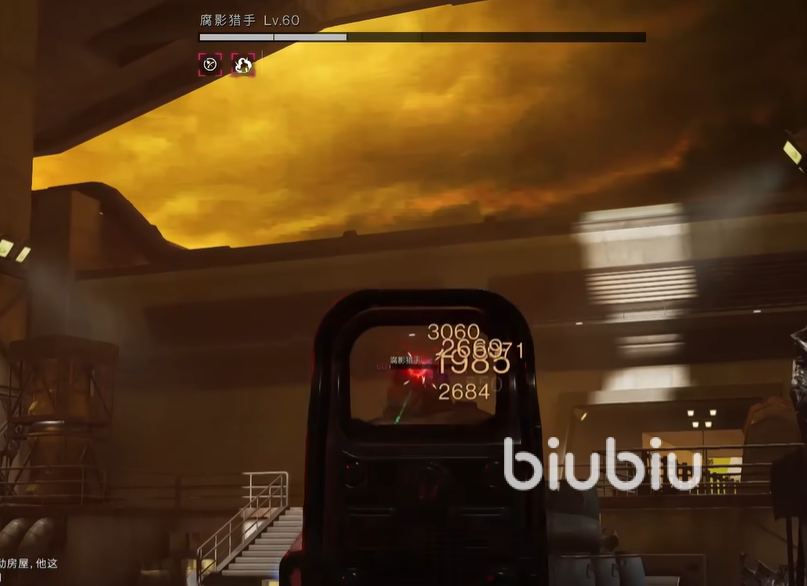 腐影猎手的初级形态是利用枪械攻击的,基本上一枪下去玩家的血量都会直接半血,装备差一点就直接死掉,所以玩家们需要看boss的抬手动作,当boss的手臂向上伸出枪支的时候,就代表要发动攻击了,这个阶段玩家们不要露头,直接躲在建筑后面的掩体,这样能确保自己不受到任何伤害。