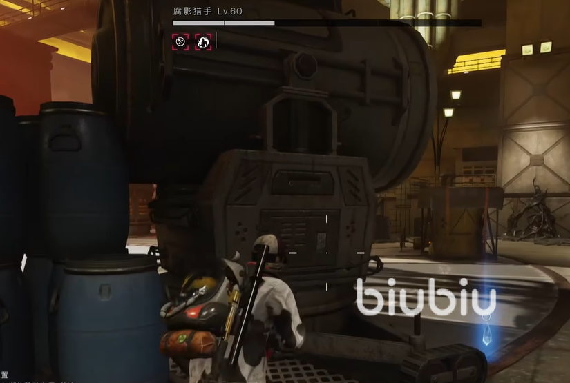 接着是进入一半血的时候,腐影猎手会进入狂暴状态,这个状态boss会直接跟踪玩家的轨迹,在地面基本上会受到持续的伤害,所以需要玩家跳到建筑上面,然后腐影猎手会呆在原地不动,这时候就能安全地输出到半血,当boss进入半血以后也会再次射击状态。