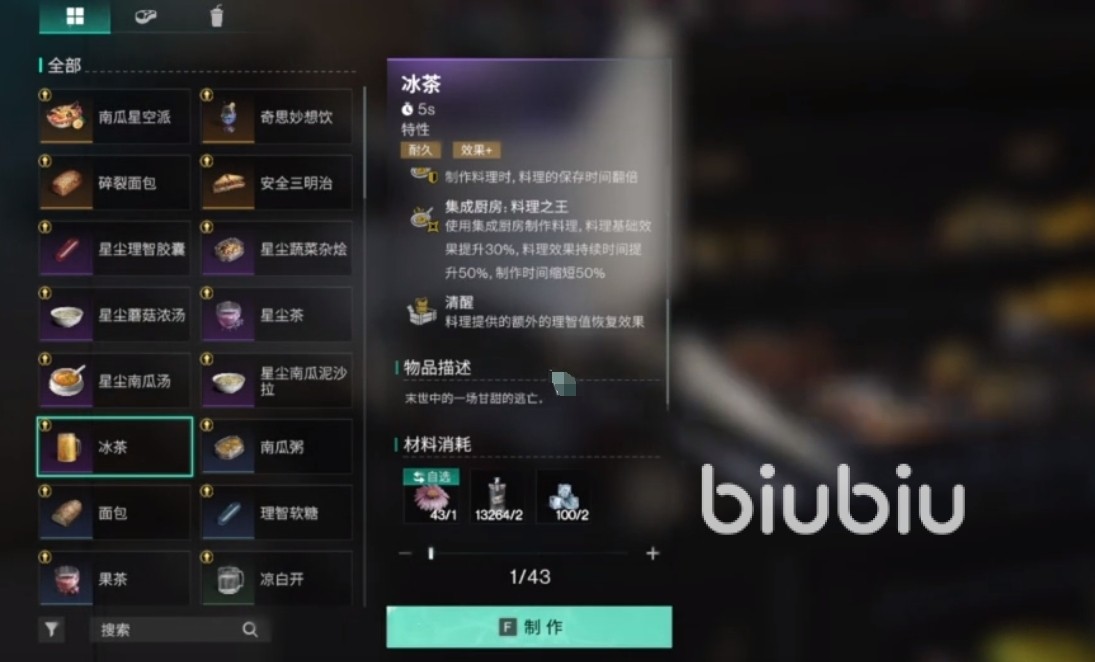 这里可去选择的食物种类还是很多的,比如肉干、骨头汤等都是不错的选择,同时蔬菜还有甜菜、白蘑菇也是可以稳定恢复的,维持日常就很合适,而一些特殊食物,像太妃糖、南瓜派等,能提供额外恢复效果,建议是在理智较低的时候去使用。