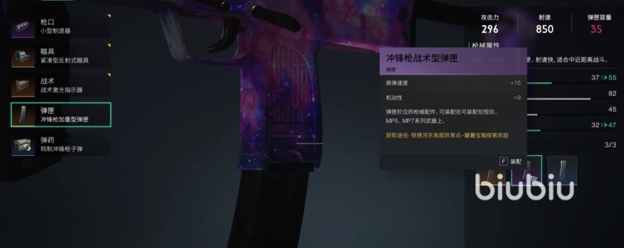玩家在使用该武器时,合理的配装也是非常关键的,的比如建议轻装版扩容弹匣,平衡弹容量和负重的情况,若是想要去追求稳定性,可去选择增强换弹速度的配件,如快速换弹枪托。