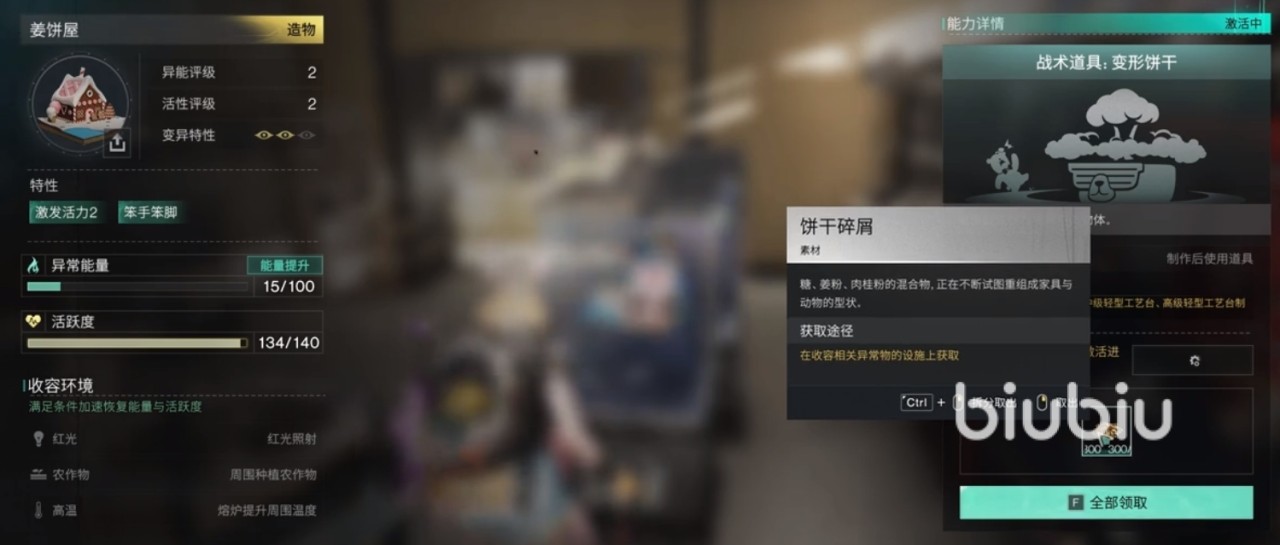 玩家若是想要去获取它的话,可考虑在大世界探索期间,注意背包上的圆环是否有开始闪烁,这就代表附近有拟态体宝箱怪,这个时候可去通过空间法则让怪物显形,成功击败以后就能有一定的概率获得姜饼屋。
