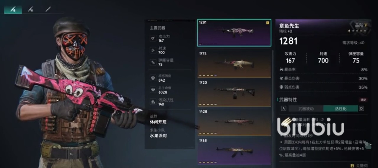 根据小编所了解的信息,章鱼先生在游戏内的定位为轻机枪蓝图,适合中远距离的火力压制,射速高的同时自身的稳定性也非常强,适合清理群体敌人或是副本战斗,其实在玩家获取蓝图后,还需主动去收集金属、零件、弹药等材料去进行制作,这样才可让自己快速去解锁它哦。