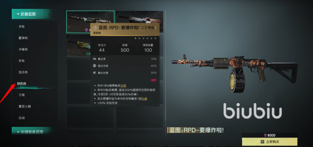 作为一把轻机枪,它的热度也是空前的高,当然这也是因为它在线的实力,主打就是对敌方造成持续的元素伤害,能利用最低的子弹消耗,打出最高的输出伤害,是性价比非常高,收益非常好的一把武器。它的特性就是在命中敌方时,有18%的几率触发燃烧效果,而且每次击中敌人都会触发燃爆,燃爆能打出300%的范围炽能伤害,而且冷却只有2秒,燃爆击中了怪物还能叠加一层燃烧buff,叠加后的输出非常夸张,在开荒期可谓是所向披靡的存在,就是售价有点高,大家要积攒一定的星之彩才能获得。