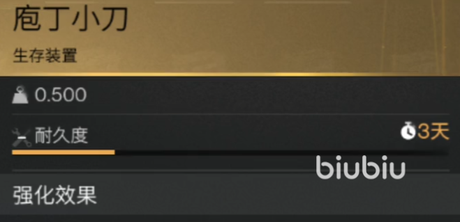 当然要是没有及时获取到,也不要着急持续升级会增加解锁概率,顺利解锁后大家就能通过工作台开始制作,庖丁小刀的制作材料主要是金属废料和零件,这两个材料都比较常见。