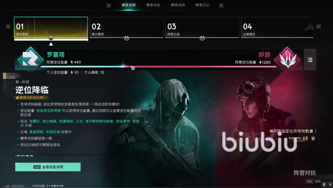 通过逆位收容物获得阵营以及个人的逆位能量分数,简单来说就是在交战区会出现各种各样的逆位收容物,他们的原型跟前面赛季的没啥区别,但是抓到以后在背包打开可以看到有钻石一样的标记,抓到收容物的人员血条左边也显示有钻石图标。