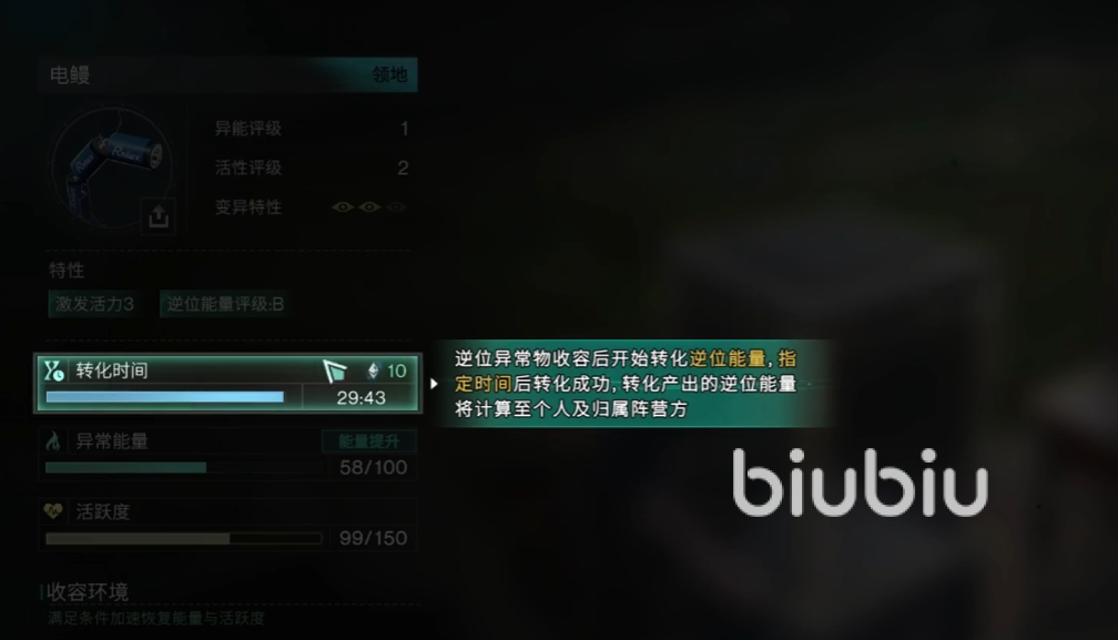 拥有收容物的一方如果成功转化,就会为阵营和个人增加逆位能量分数。赛季一阶段每个逆位收容物是十点能量,转化时间为30分钟,转化成功后就会变成普通的收容物。第一阶段建筑物受到庇护,玩家对建物的伤害减少72%、公共事件中的逆位收容物每天12点刷新,每日上限五十可积累。第二阶段,就会出现逆位收容物狂野青龙,拥有大量的逆位能量,到了第三阶段就会出现逆位收容物辉光空之子,会有更多的逆位能量。