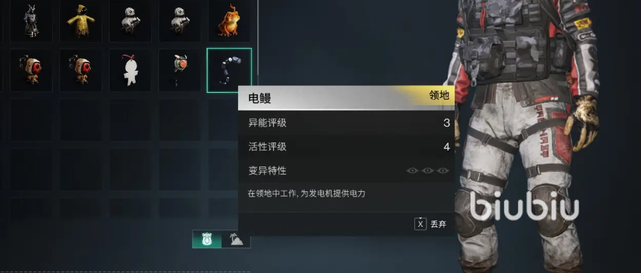 ①电鳗可有效提升电力输出,在游戏中,玩家可将电鳗与发电机结合运用,以增强电力供应,弥补太阳能和水力发电的局限性。电鳗的异能属性越高,其发电效果便越显著且持久。②此外,电鳗还可用于制作恢复体力的道具。作为烹饪材料,电鳗能够帮助制作出能够恢复体力的道具,为玩家提供额外的生存支持。