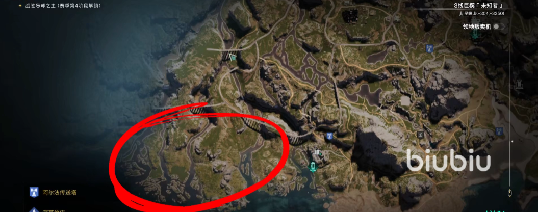 首先需要跟朋友们强调一下,大世界上好多的鳄鱼都是不能抓的,其次就是点位,位于地图左下角,银滩背部传送塔这里,传送到这里之后,可以看到左边是有一个桥的,从桥往下的位置都是可以抓鳄鱼的,具体可以看下图圈出来的部分。