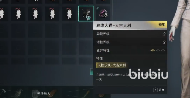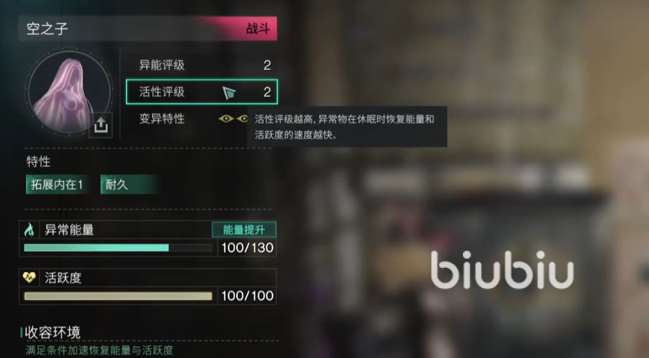 异维大猫-大吉大利/月亮钻石(领地类):前者提升活跃度上限,月亮钻石则是在休眠中恢复能量的时候概率帮助其他领地型异常物恢复能量。均可在营地探索或收容井中找到。