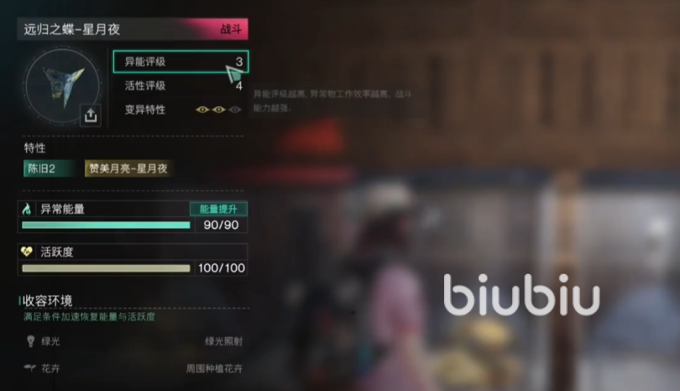 远归之蝶-星月夜(战斗类):同步该能力后,玩家在夜晚获得6%(枪械、异常)伤害提升,该效果在白天减半。可在世界探索或收容井中发现。