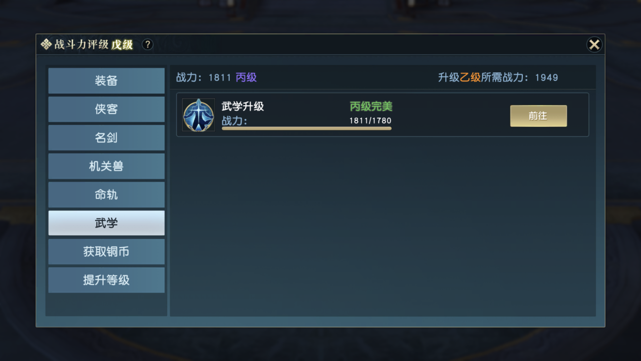 在其他可提升的项目中武学的战力是最好更上最省事的,只要在升级后消耗铜钱提升到与等级同等的级别上就可以。