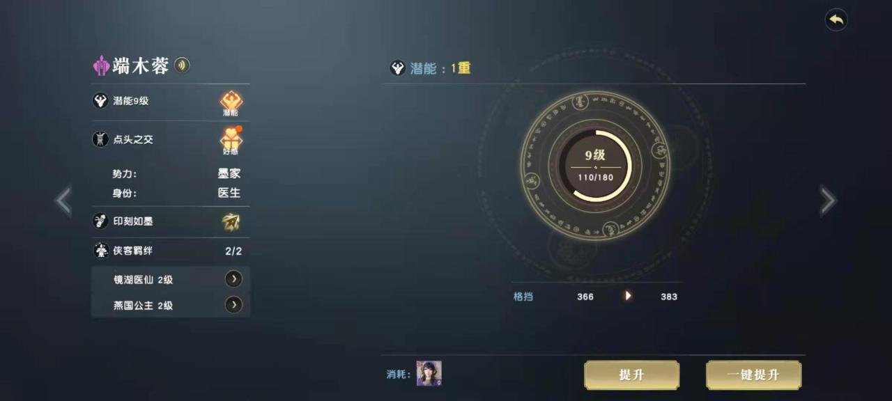 端木蓉在最初是系统直接激活的侠客,并不需要玩家可以的去激活,但是后来的潜力升级以及好感度培养就需要玩家自己来进行了。升级潜力就相当于为侠客升级,因为侠客可以提升玩家的属性,以及指点技能,潜能激发的等级越高,增加的属性以及指点的效果也就越好。