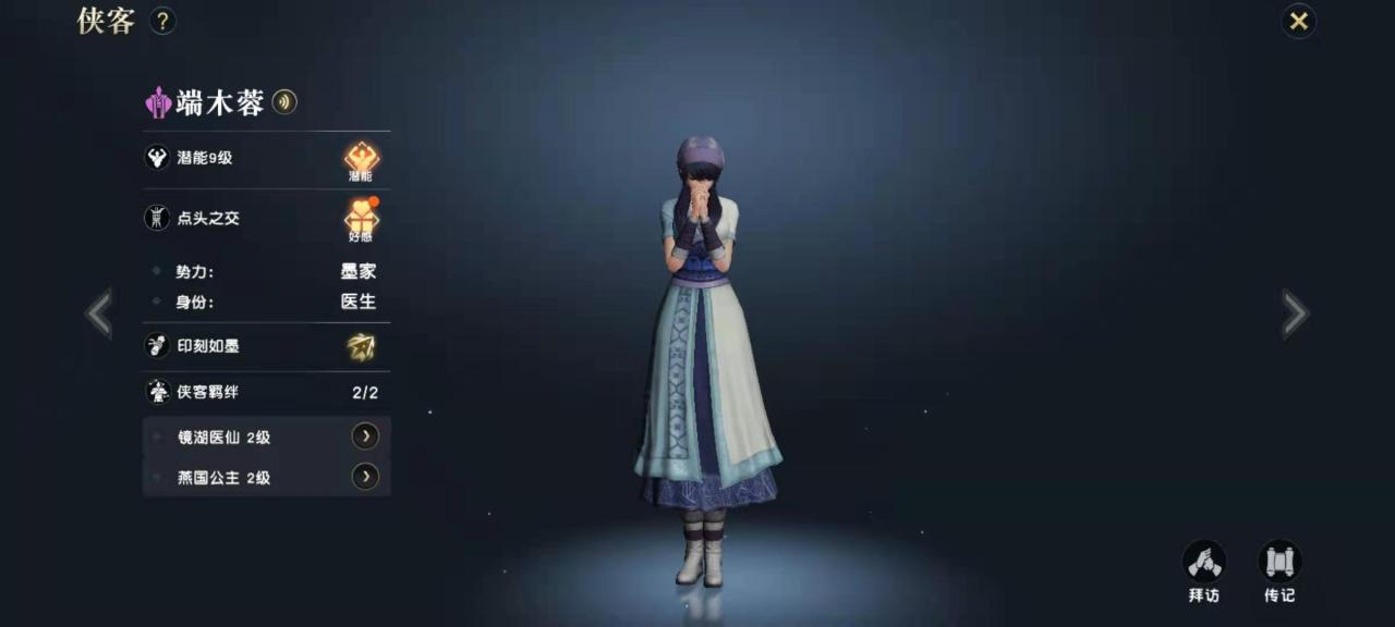 端木蓉可以增加玩家的格挡属性,这对于兵家来说尤其重要,所以兵家一定会大力培养端木蓉的,再就是端木蓉可以激活镜湖医仙和燕国公主这两个侠缘,增加增加命中,气血和击破,闪避,格挡等属性,也能提升不少战力。