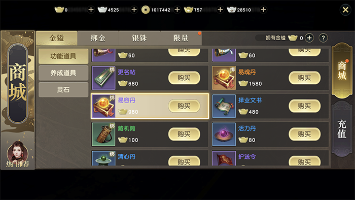 在商城中有一种特殊的道具,叫做易容丹,这个道具在商城中售价可不低,980金镒,购买绑定,价值接近百元了。这个道具就是进行易容的必需品。