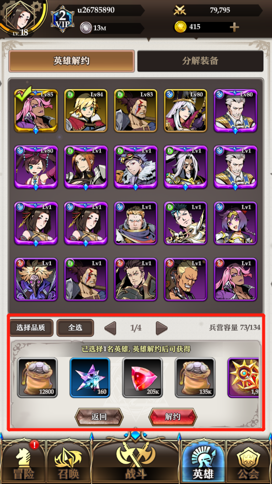 骑士与契约英雄怎么分解,没用英雄这样解决