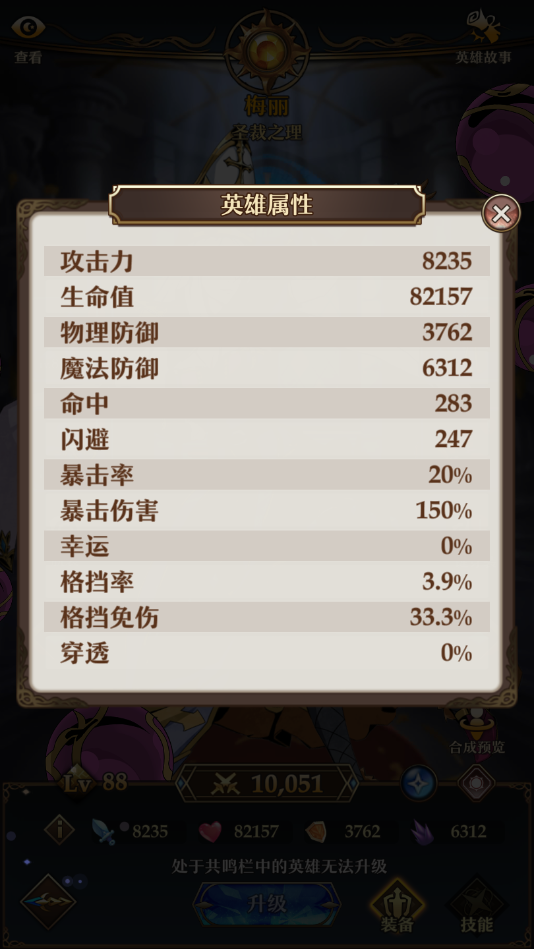 (3)技能加成:部分英雄的技能是有治疗量加成的,比如在竞技场和副本都非常实用的梅丽就是这样一个英雄。