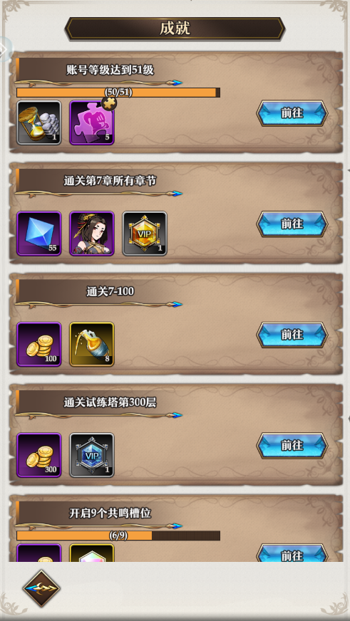 1、成就任务:成就任务的奖励是比较丰富的,抽卡道具先不提,光是英雄和英雄碎片的数量就已经非常的多。
